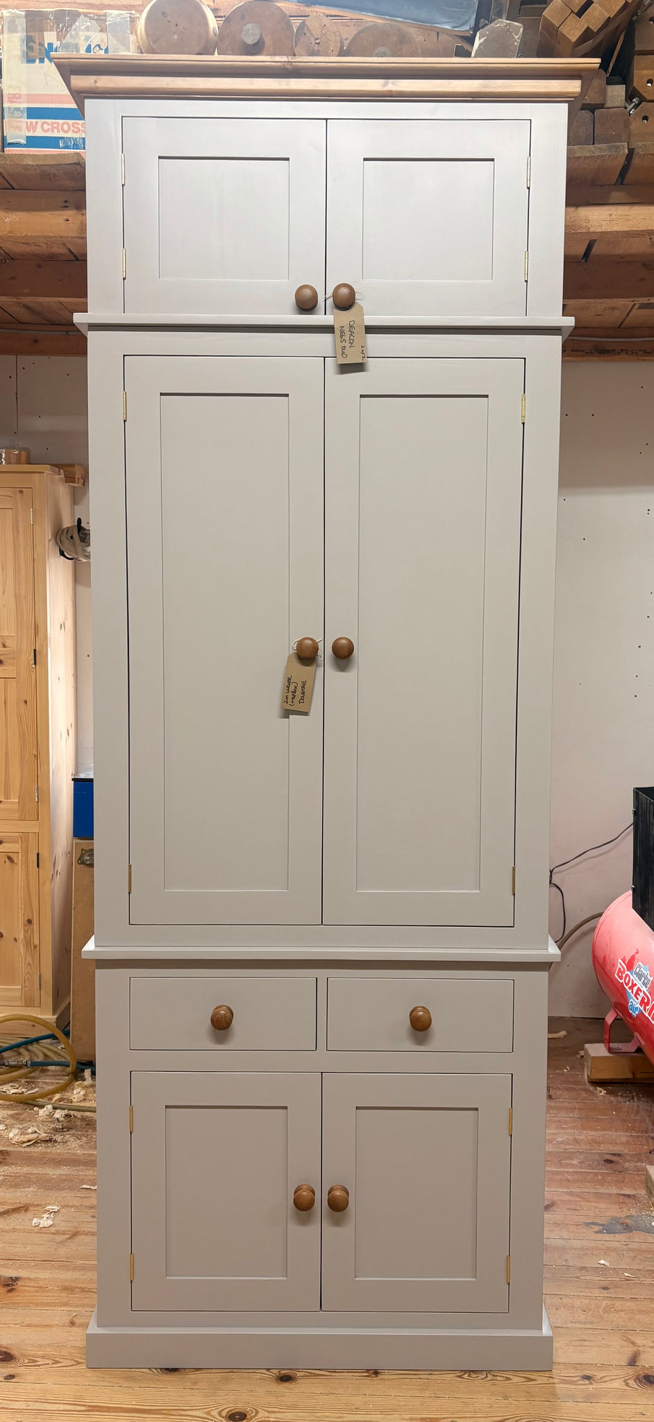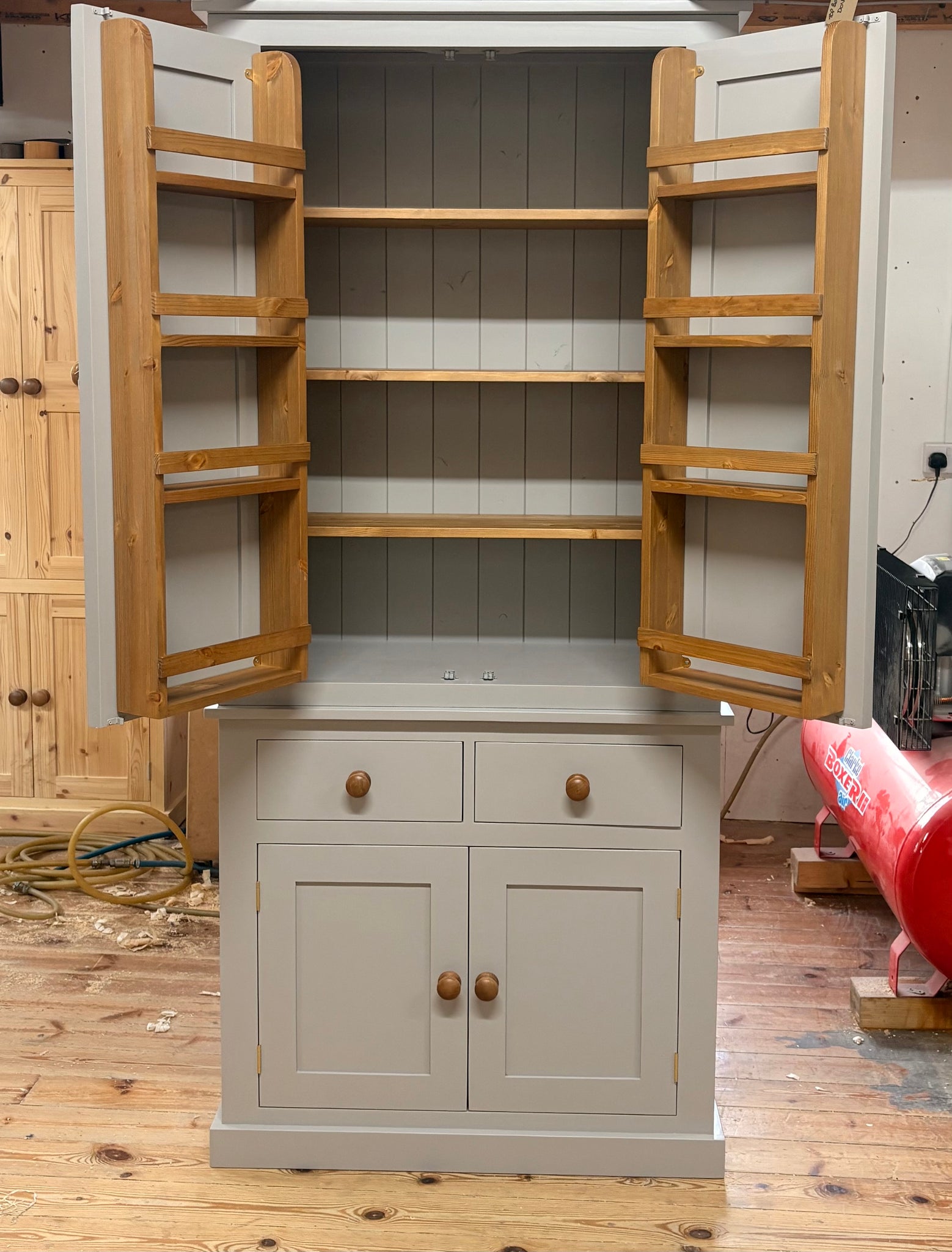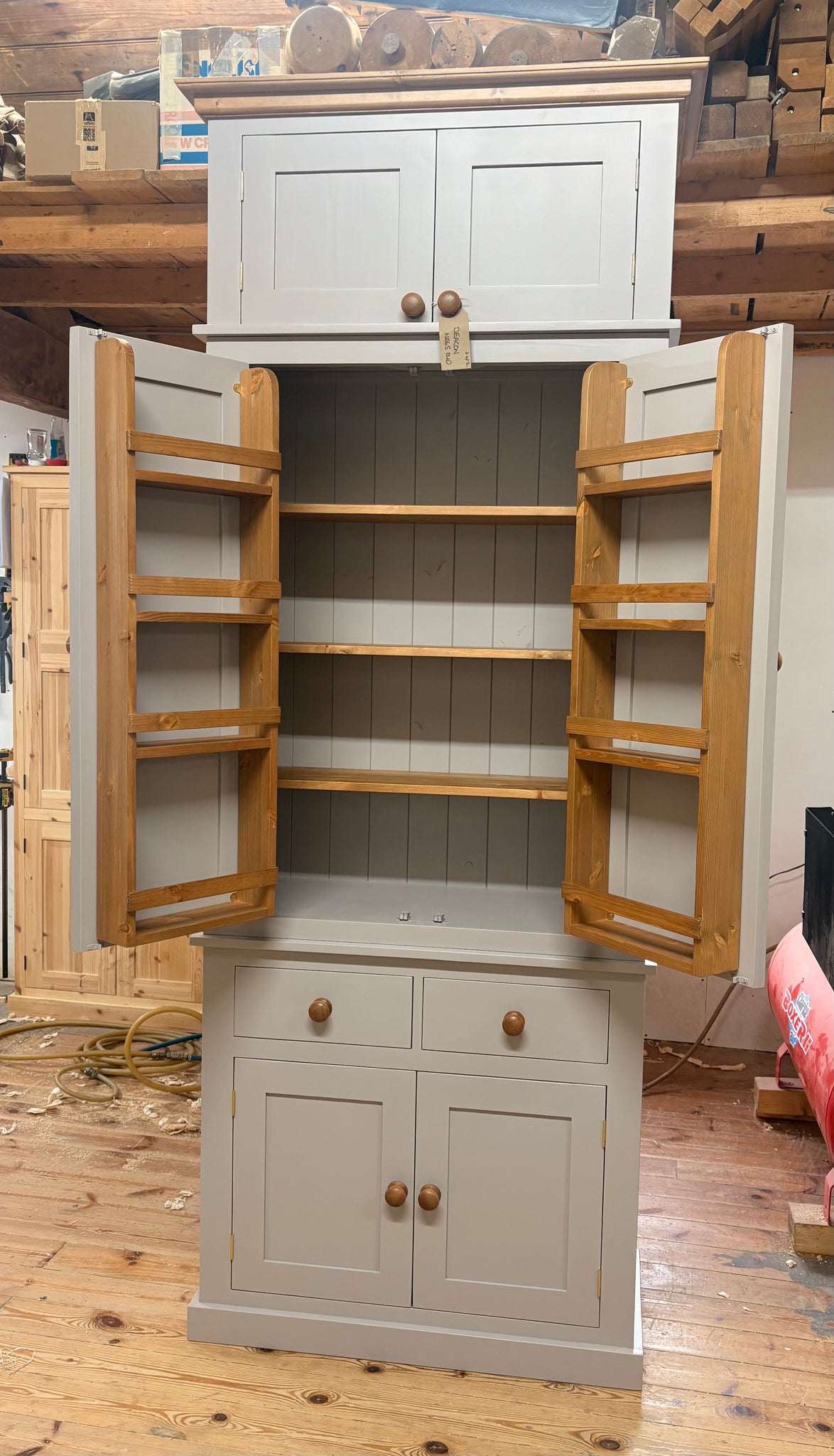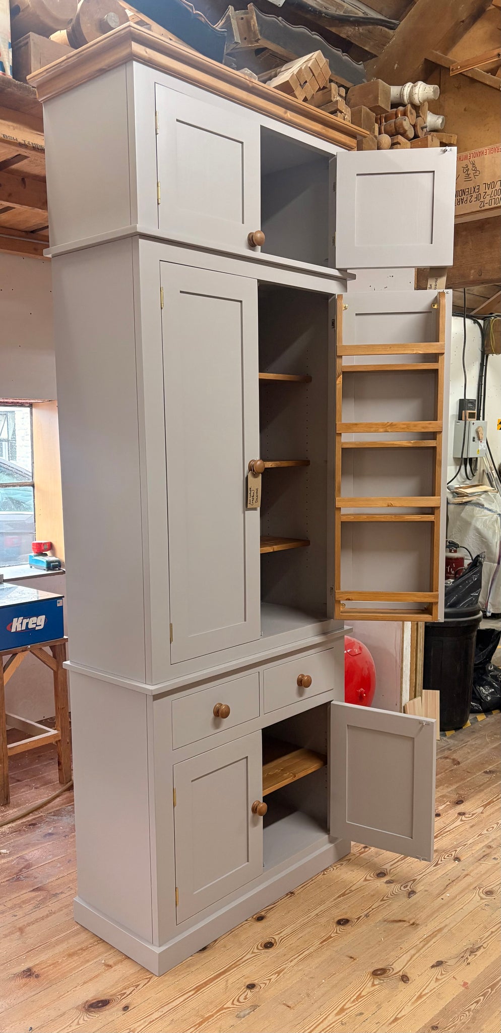 HANDMADE in the UK - 2 Door with 2 Drawer over 2 Door Kitchen Pantry Storage Cupboard, Shelving and Spice Racks