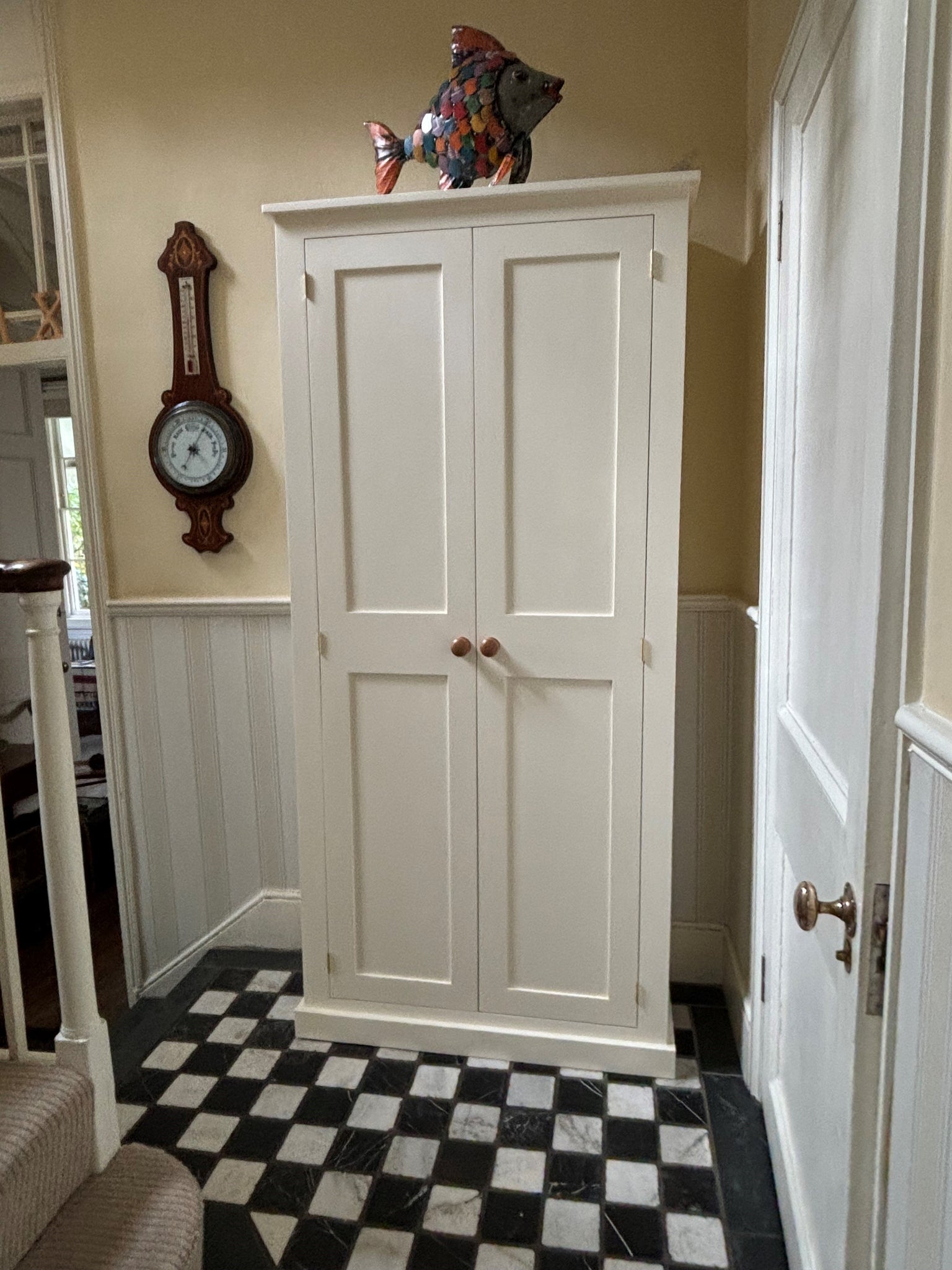 Leaving the shelves in places allows for the storage of boots, shoes, handbags, umbrellas and anything else which needs to be taken out of sight.