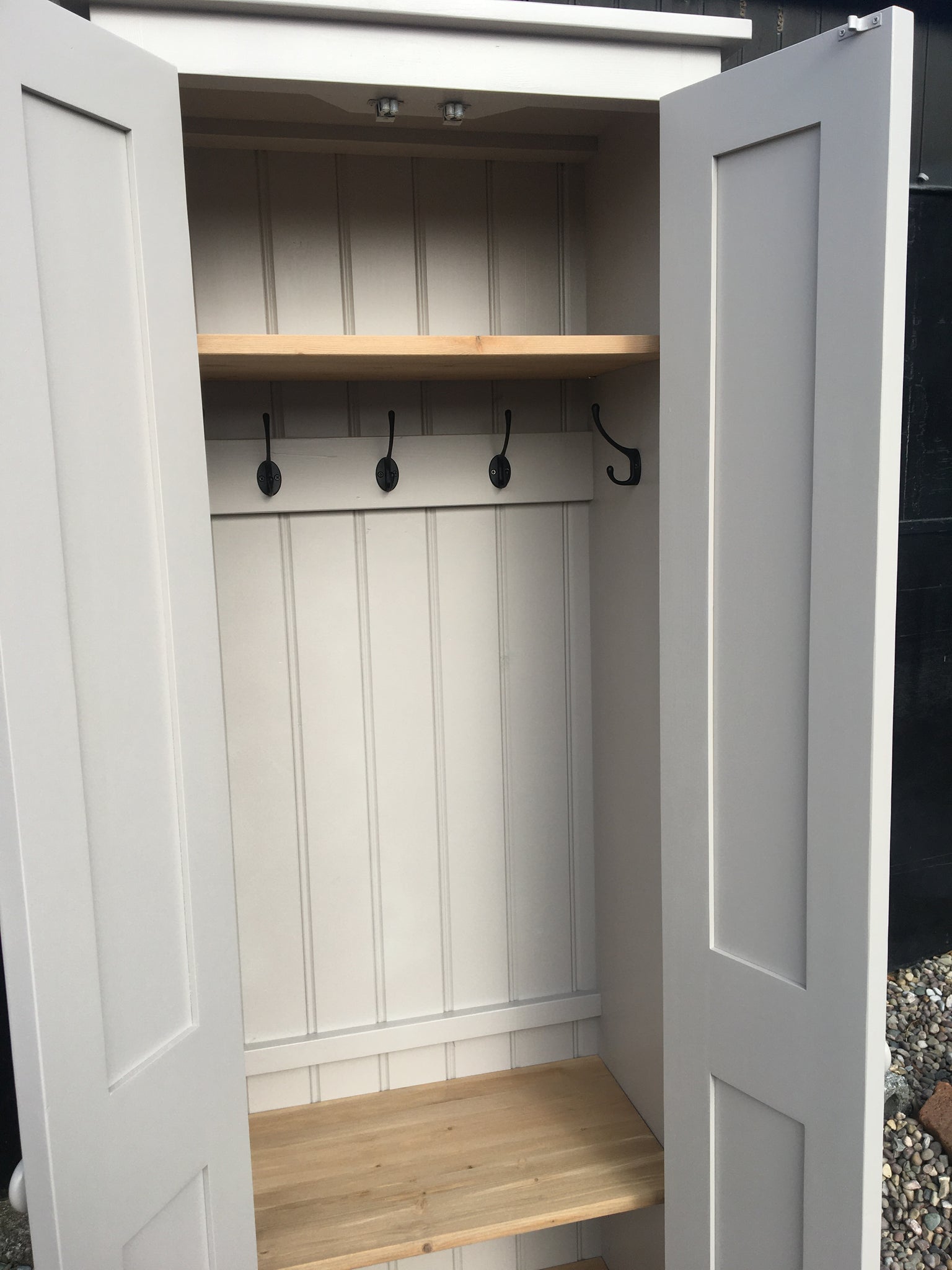 Hallway, Utility, Cloak Room Storage Cupboard with Coat Hooks and 3 Shelves - Option 1